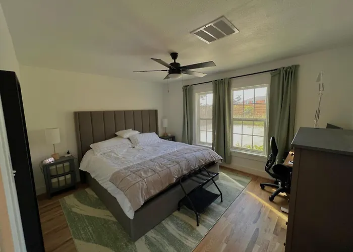 Each room in the property is meticulously designed for optimum relaxation, featuring the opulent King Bed Room in a spacious two-bedroom home. Here, guests will find thoughtfully incorporated blackout curtains that invite peaceful slumber, ensuring a rejuvenating night's rest. For those who value productivity, this suite is equipped with dual monitors, creating a conducive work environment amidst the welcoming decor.